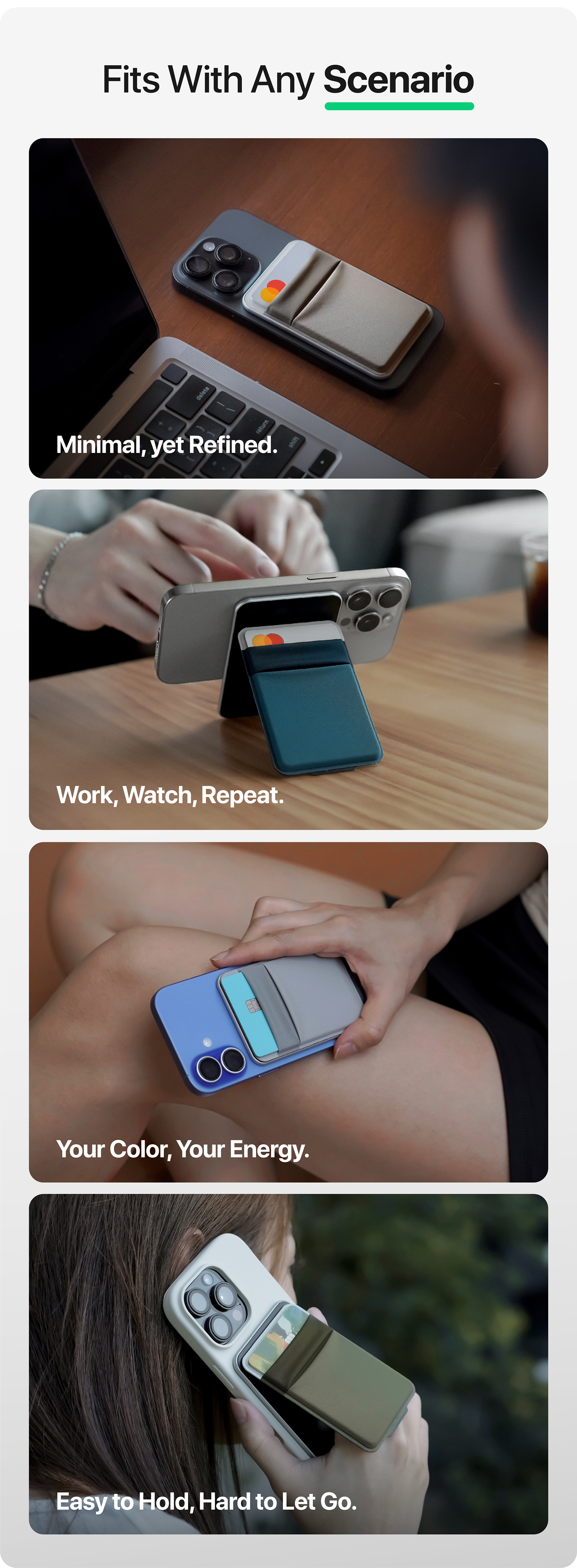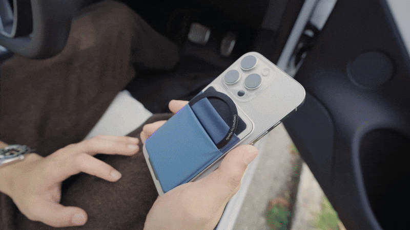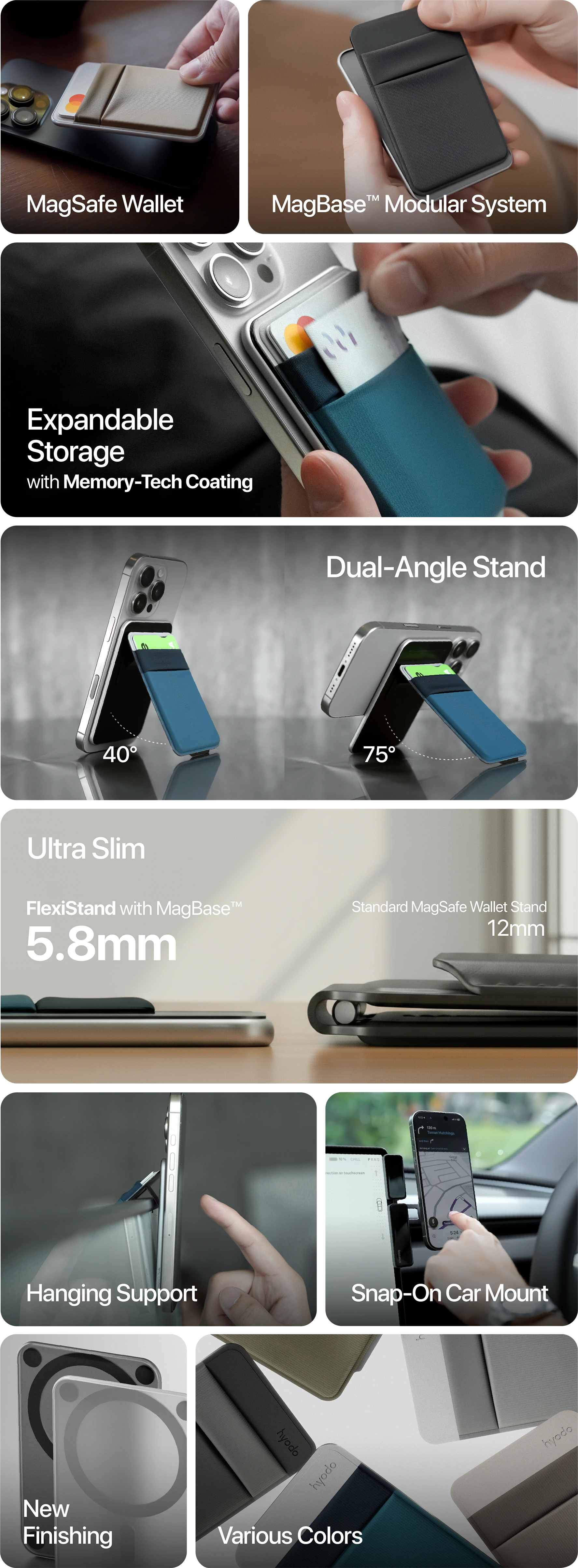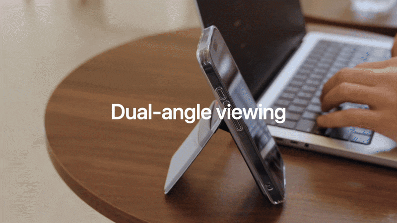It’s less than half the thickness of standard MagSafe wallet stand — yet offers both dual-angle viewing and expandable storage.