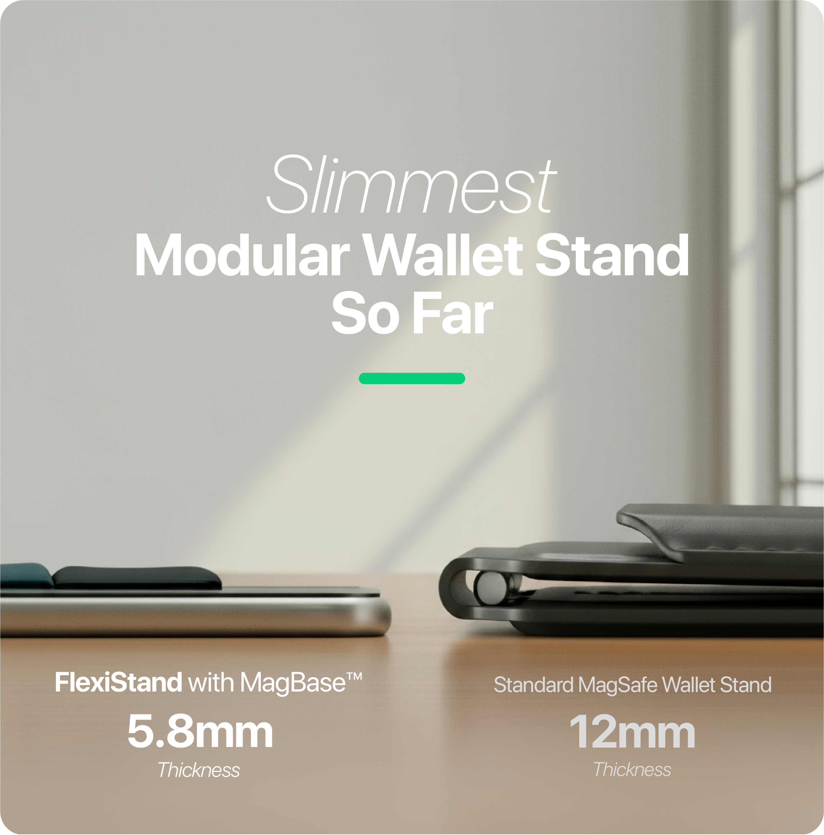 At just 5.8mm, the FlexiStand with MagBase™ redefines what’s possible for a modular wallet stand.